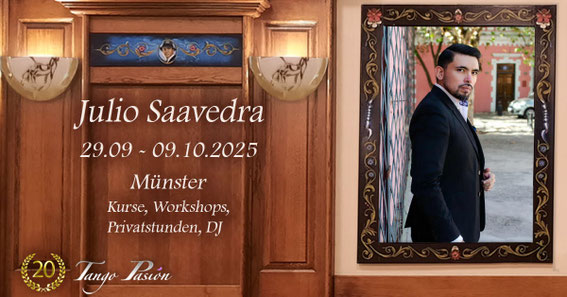 Vom 29.9.2025 bis zum 9.9.2025 ist Julio Saavedra in Münster und hat auch Zeit für Privatstunden. Meldet euch gerne dazu auch bei info@tangopasion.eu